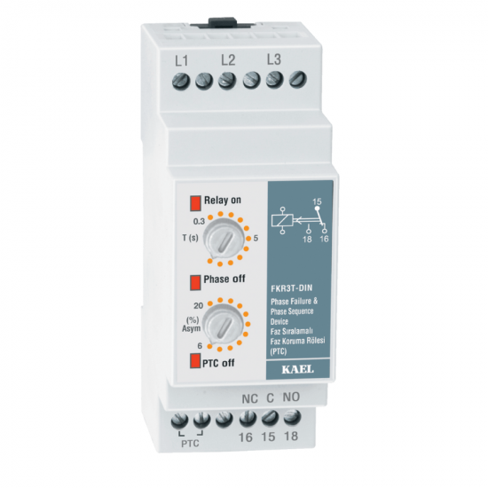 • Kael FKR3T-DIN Faz Sıralamalı Nötrsüz PTC Faz Koruma Rölesi